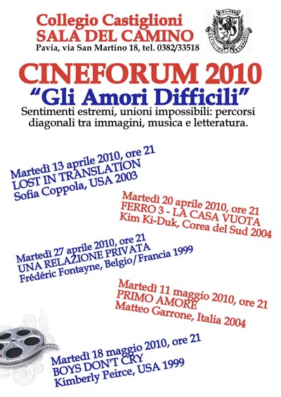 verranno proiettate alcune pellicole selezionate per il Cineforum