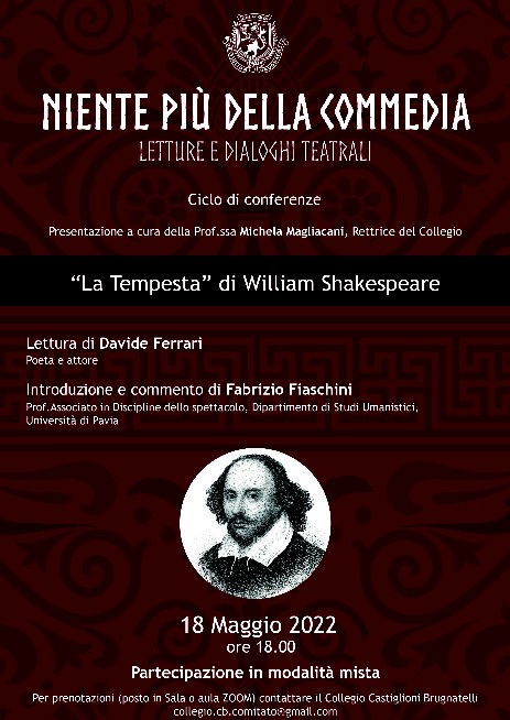Il ciclo seminariale "Niente più della Commedia" si conclude con un terzo incontro incentrato su una delle più grandi opere di Shakespeare: La Tempesta.