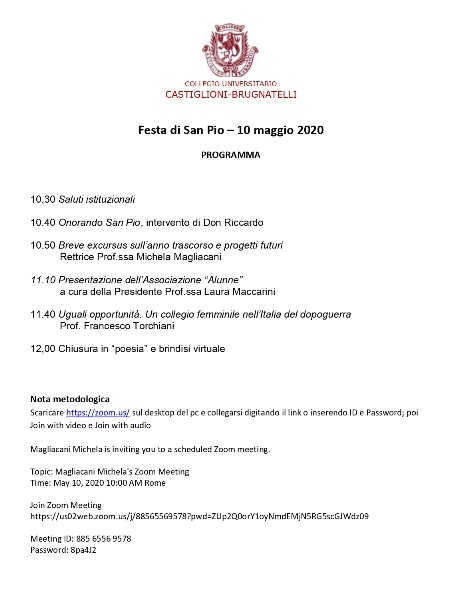 La festa si terrà dunque il 10 maggio, a partire dalle ore 10.30, sulla piattaforma Zoom.